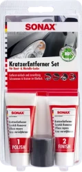 Polírozókészlet a helyi karcolások és horzsolások kézi eltávolításához a fényes bevonatokról. 2-3 egyszerű lépésben még a mély karcolások is eltávolíthatók, feltéve, hogy azok nem terjednek át az alaplakkra vagy az alapozóra. Színes, fémes és karcálló festékekhez.
