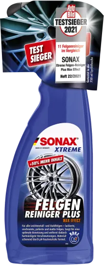 Az XTREME Rim Cleaner PLUS egy rendkívül hatékony speciális tisztítószer minden acél és könnyűfém felnihez - beleértve a festett, krómozott, fényezett és matt felniket is. A szennyeződéssel érintkezve a tisztítószer vöröses színűvé válik, és így mutatja meg teljes hatékonyságát. Különösen kíméletes az anyagokhoz, garantáltan nem támadja meg a felni felületét vagy a kerékcsapokat. TPMS (abroncsnyomás-ellenőrző rendszer) rendszerrel ellátott kerekekhez alkalmas. pH bőrsemleges. Citrus illattal.